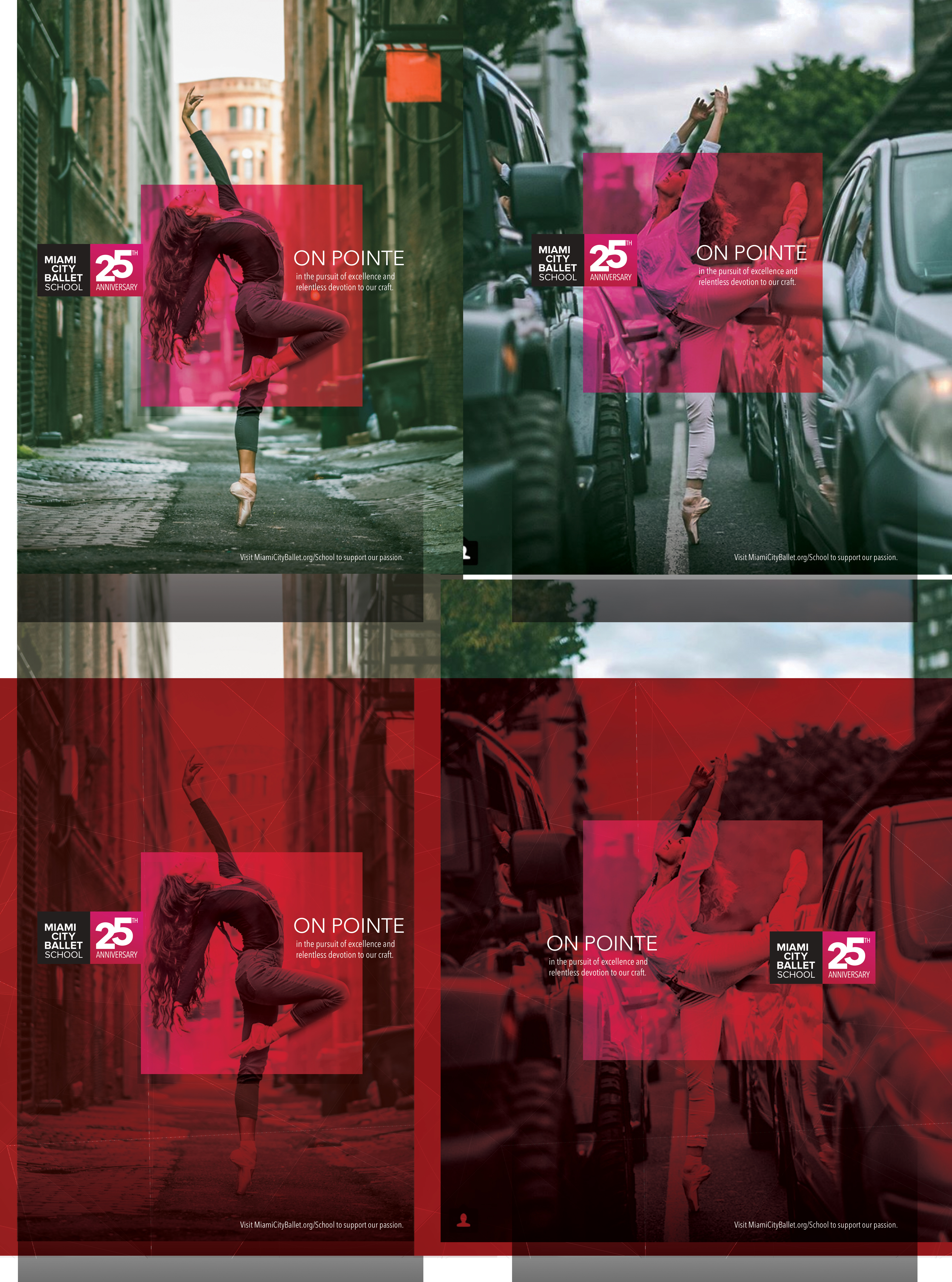 The square is the most important element within the image, highlighted to unify different photographs in this ad campaign for the 25th Anniversary of Miami City Ballet.