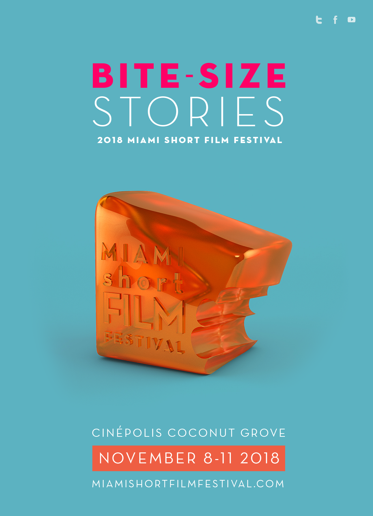 The concept of this piece was developed in collaboration with a talented illustrator. Together, we conceptualized the idea of transforming the logo of the Miami Short Film Festival into a movie snack, and associating it with something small.